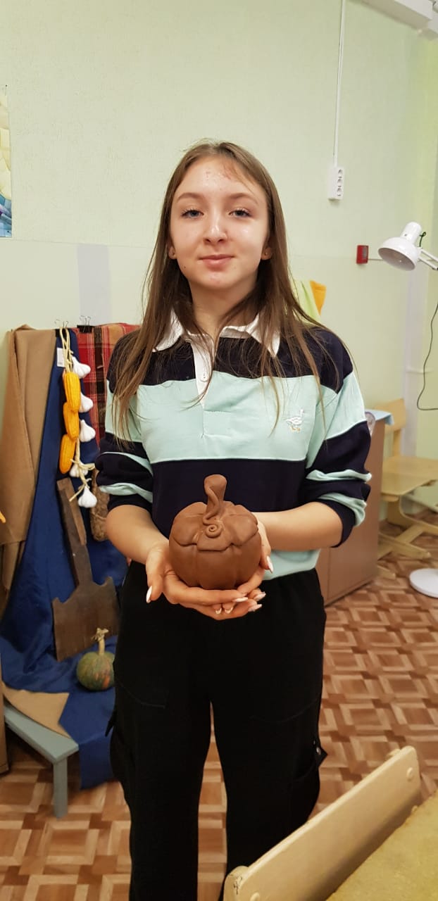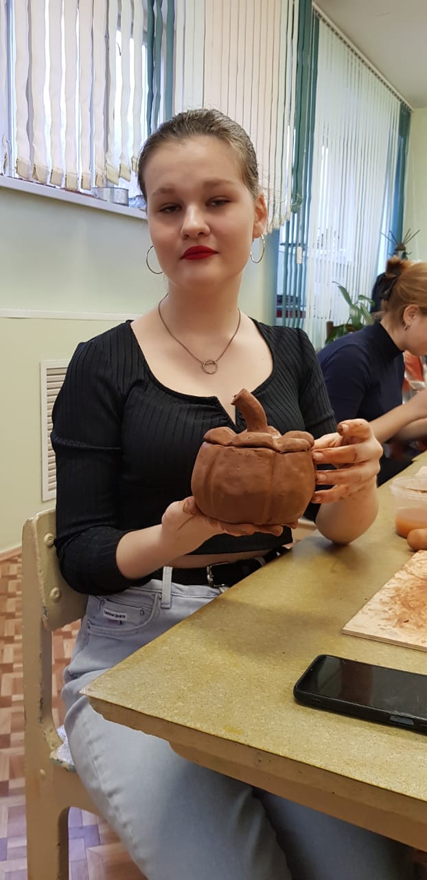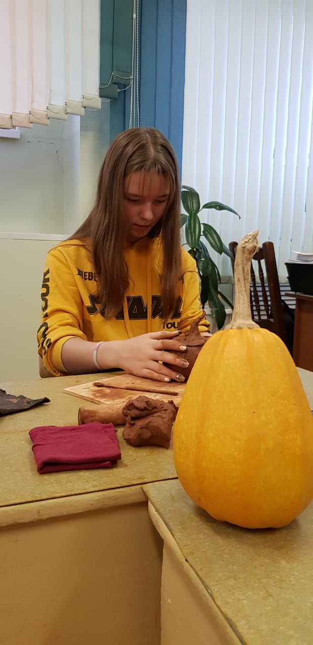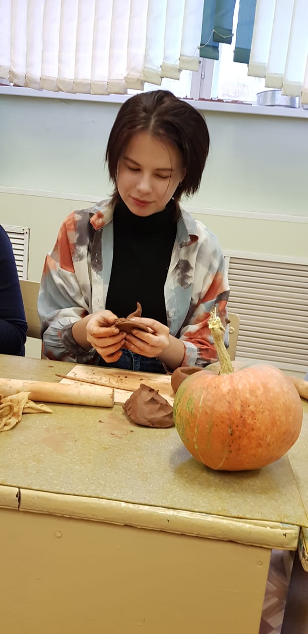 Под руководством педагога, участники мастер-класса слепили из глины самый красивый символ осени – Тыкву.