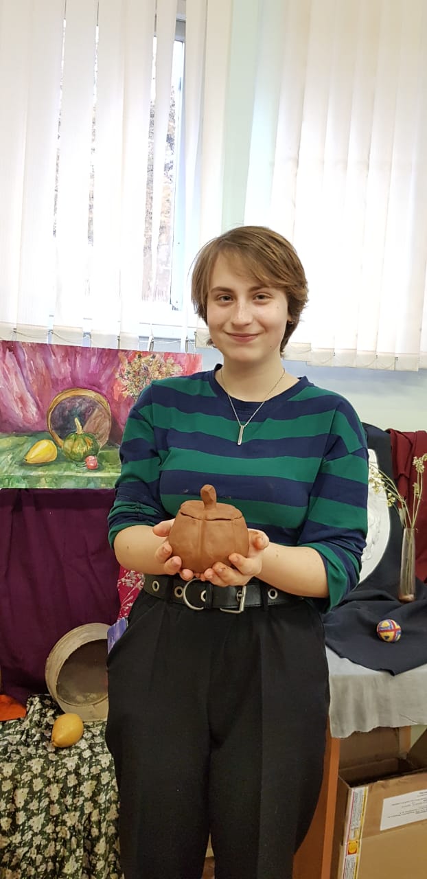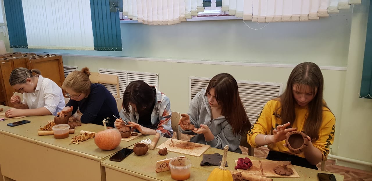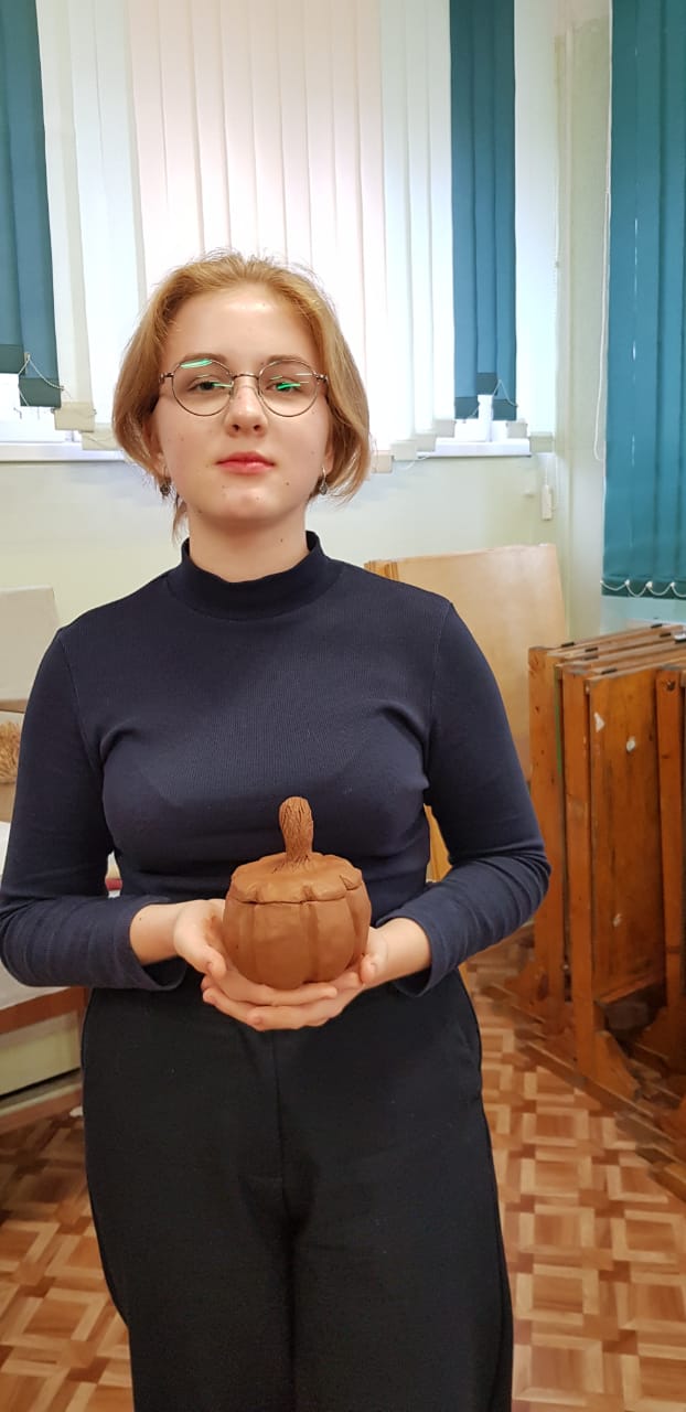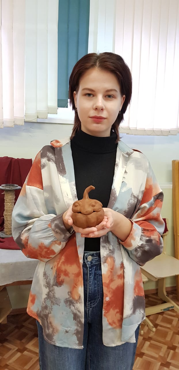 Под руководством педагога, участники мастер-класса слепили из глины самый красивый символ осени – Тыкву.