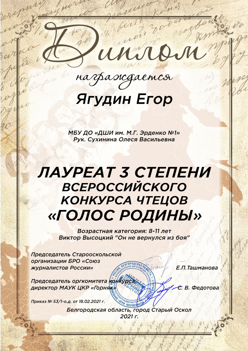 В феврале 2021 г. в МАУК ЦКР «Горняк» проходил Всероссийский конкурс чтецов «Голос Родины».