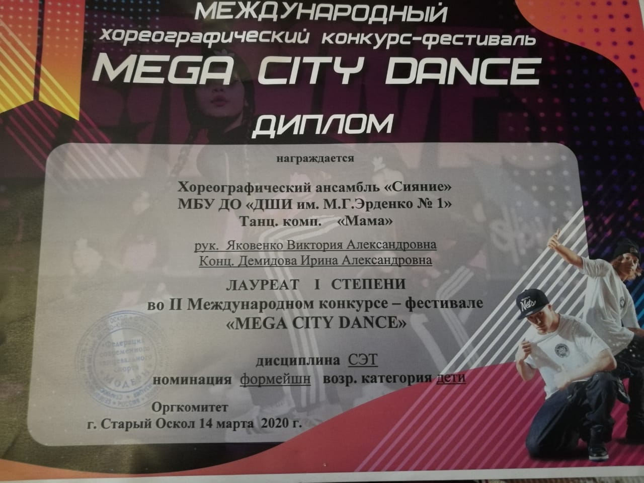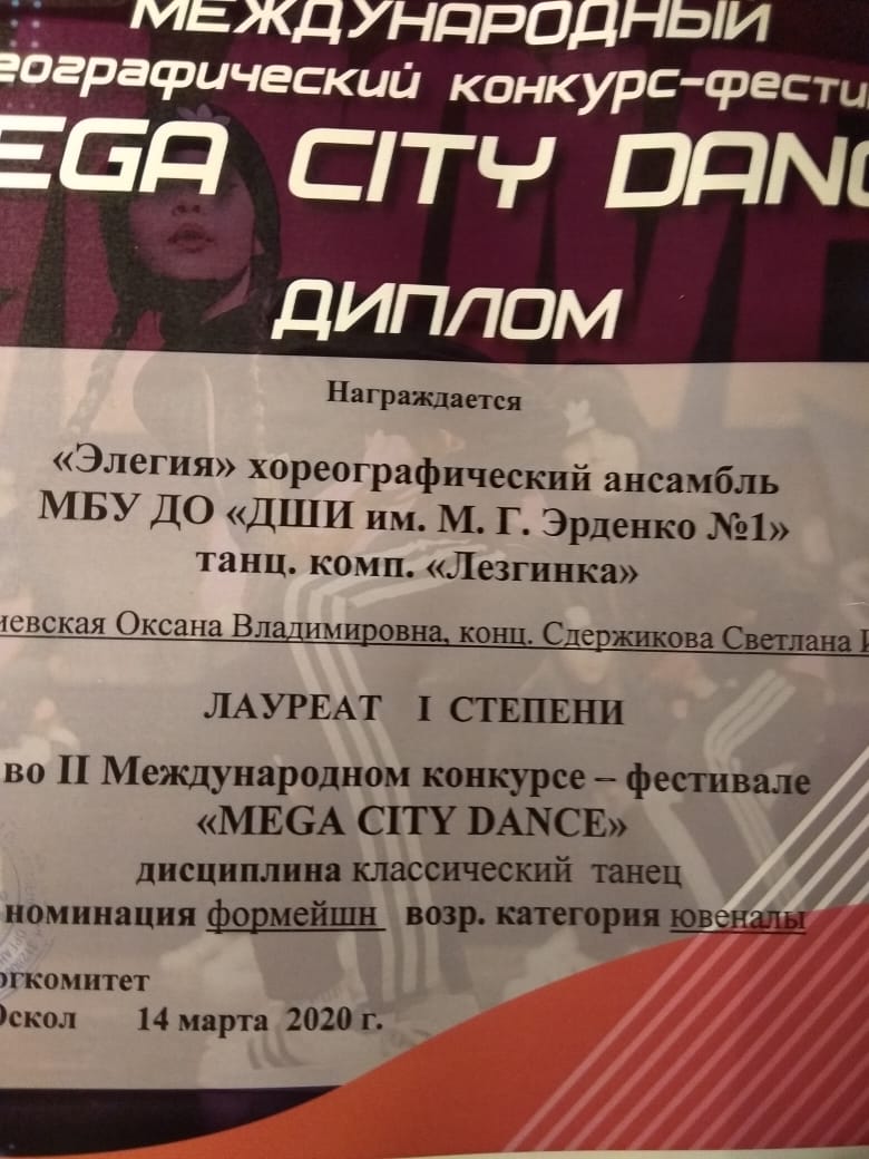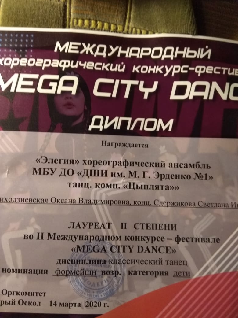 14 марта 2020 года с г. Старый Оскол состоялся II Международный конкурс-фестиваль «MEGA CITI DANCE» для учащихся хореографических отделений ДМШ И ДШИ, хореографических студий. В конкурсе приняли участие учащиеся хореографического отделения нашей школы.