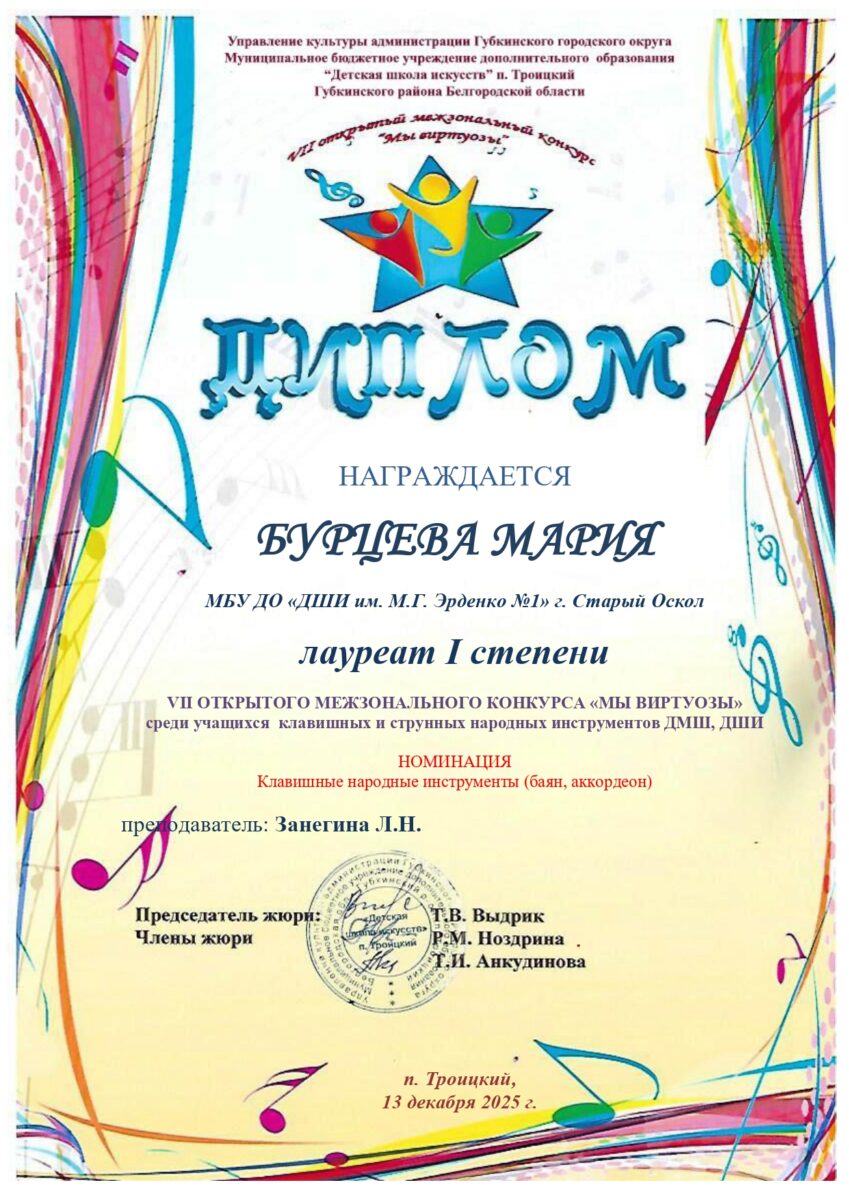В конкурсе приняла участие учащаяся по классу аккордеона Бурцева Мария, преподаватель Занегина Л.Н.