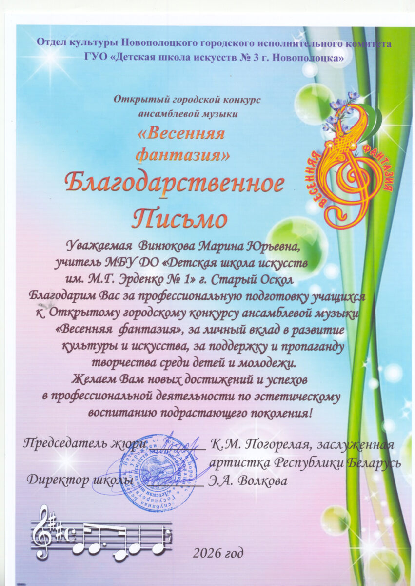 Поздравляем учащихся и преподавателей с победой в Открытом городском конкурсе ансамблевой музыки «Весенние голоса».