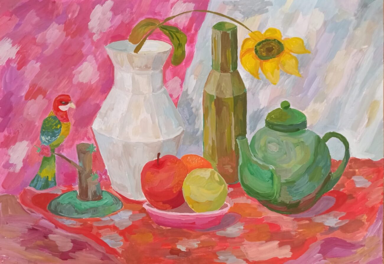 Выставка работ учащихся детской художественной школы приглашает окунуться в мир натюрморта глазами начинающих талантов. Представлены картины разных техник: живопись яркой гуашью и прозрачной акварелью, точные линии академического рисунка простым карандашом и необычные композиции в технике изонить — узор из ярких нитей. Посетители смогут оценить уровень мастерства учеников, познакомиться с особенностями каждого жанра изобразительного искусства и насладиться свежими взглядами на привычные предметы.