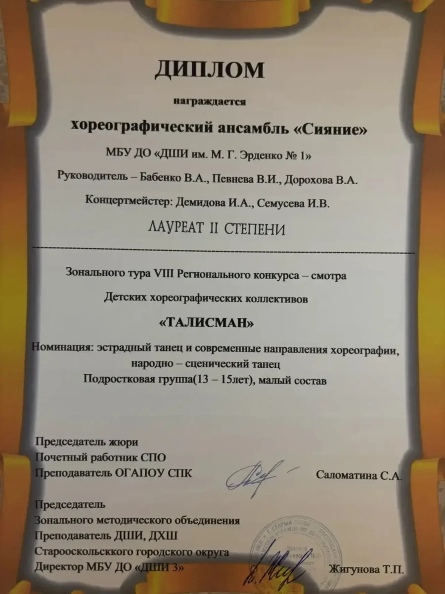 Хореографический ансамбль «Сияние» – лауреат II степени